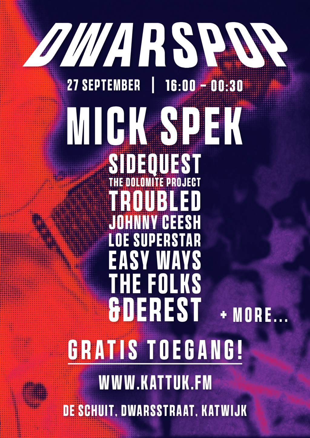 Kattuk.nl en Kattuk.fm organiseren samen met De Schuit een gratis festival met: Easy Ways, Sidequest, The Dolomite Project, Johnn...