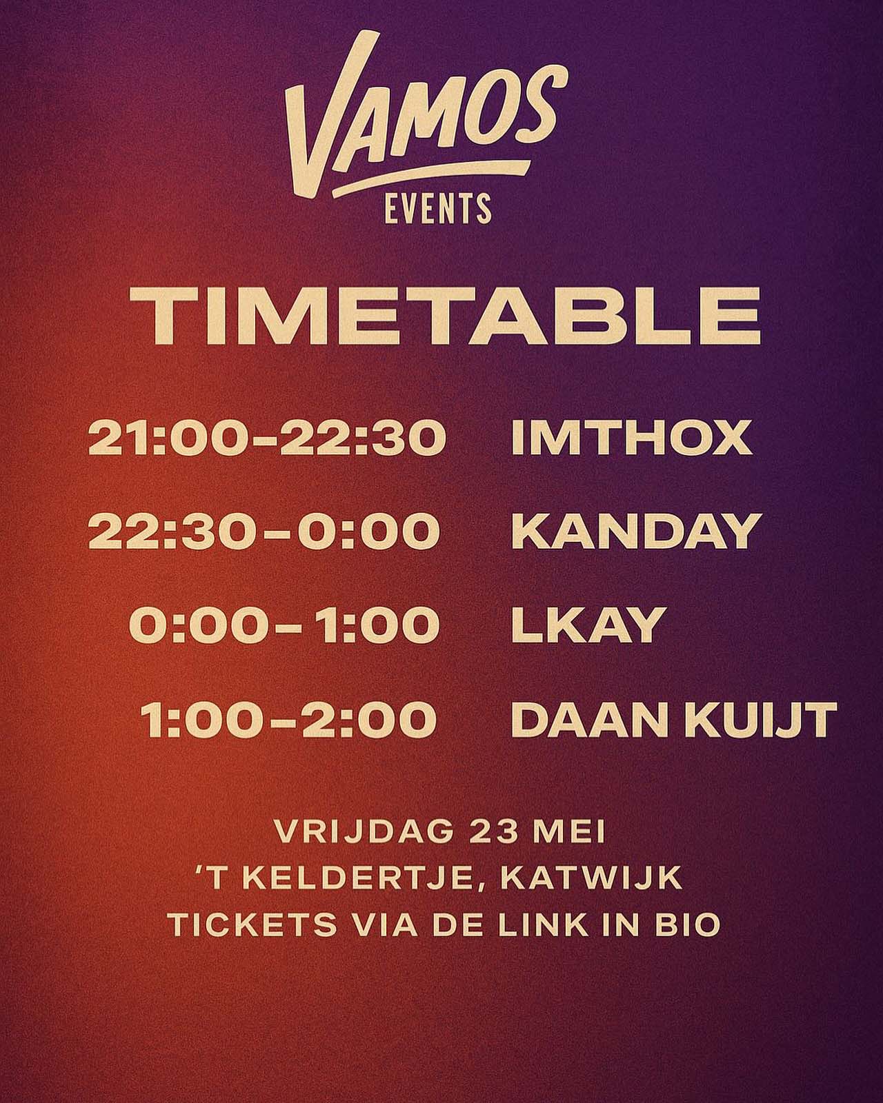 23mei(mei 23)21:0024(mei 24)02:00VAMOS @ 't KeldertjeHardstyle & Rawstyle