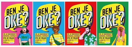 De campagneboodschap is neutraal: Zie je ongewenst seksueel gedrag? Vraag dan aan degene die het overkomt: ‘Ben je oké?’ Op de bijbehorende campagnewebsite www.benjeoke.nl staan filmpjes die laten zien hoe je ongewenst seksueel gedrag bespreekt als je het ziet én hoe je vervolgens omgaat met de reactie van de ander. Hier kan iedereen door het uploaden van zijn foto laten weten je veilig uitgaan belangrijk vindt en die vervolgens te delen op Instagram en Snapchat. Zo maken we samen duidelijk dat het oké is om ongewenst seksueel gedrag te bespreken.