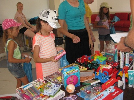In de gesprekken die je via tolken met de kinderen hebt, hoor je vaak van schrijnende thuissituaties. Alcoholisme, kinderen waarvan vader of moeder er vandoor is, mishandeling enz. De tranen springen je daarbij soms in de ogen. Want zij moeten weer terug naar huis! Er is uiteraard nazorg. De Oekraïense leiding, die allen christen zijn, houden contact met de kinderen via jeugdclubs en huisbezoeken. De laatste donderdag in de kampen is altijd heel bijzonder. Dan krijgen de kinderen allen veel kadootjes die door onze sponsors verstrekt zijn. Dit jaar heel bijzonder: Alle kinderen kregen een gevuld toilettasje. Deze waren door de kinderen van de Oranje Nassauschool in Rijnsburg verzorgd! Super !